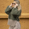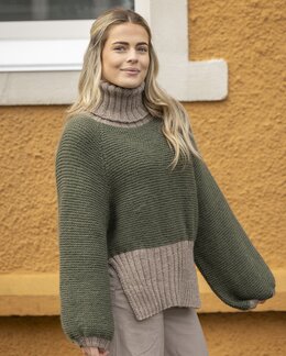 En blød og stilren sweater med afslappet pasform og brede ribkanter. Den strikkes i retstrik med to harmoniske farver, der mødes i en markeret nederkant – en enkel detalje, som giver et elegant udtryk.
