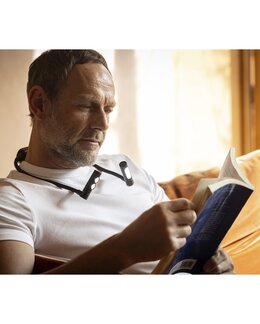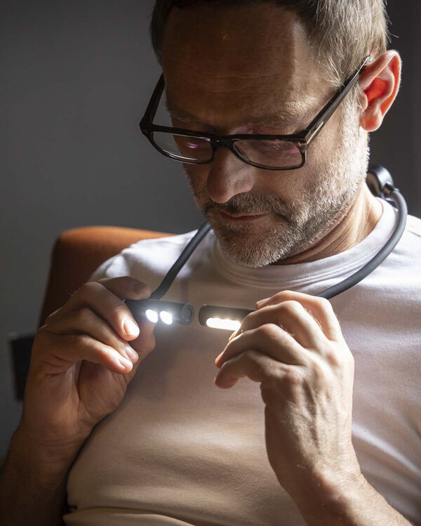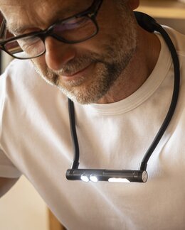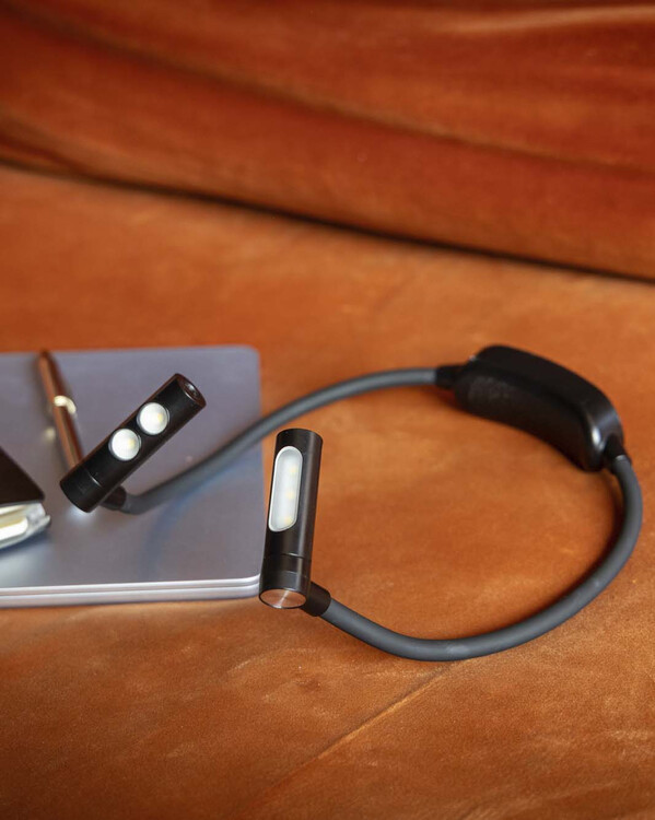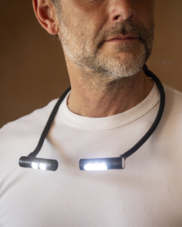 Det fleksible design og de U-formede nakkestøtter giver optimal komfort over længere tid og har desuden en batteritid på op til 8 timer på den højeste lysindstilling.