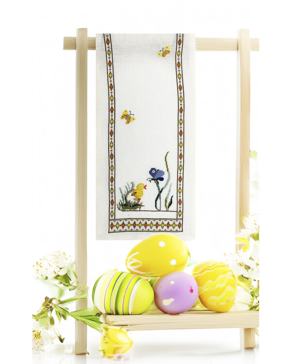 Broderier > Julebroderier > Juleduge & løbere > Broderikit Løber Nysgerrig Kylling