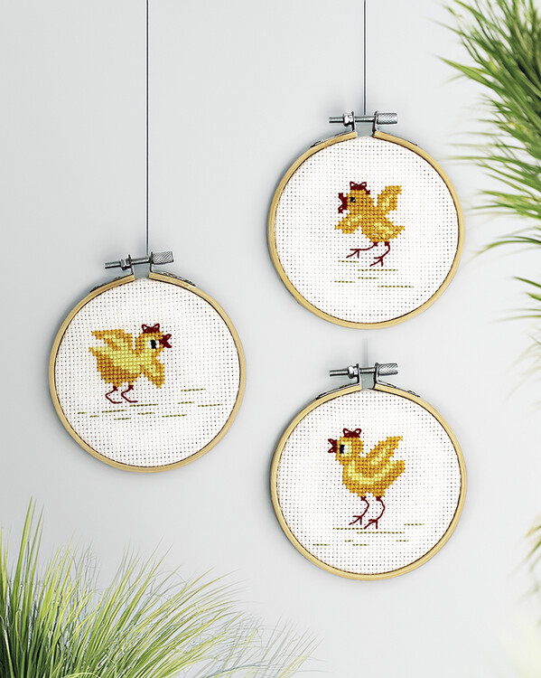Broderier > Billeder > Broderikit Billeder Kyllinger 3-pak