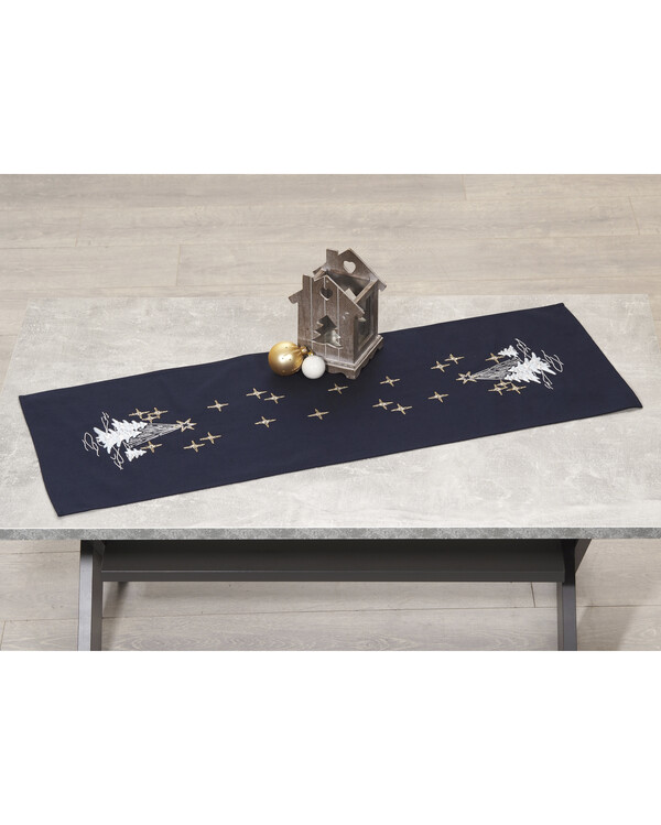Broder en stemningsfuld dug og/eller løber fra Duftin med et flot motiv. Så pynt op derhjemme til en hyggelig jul!